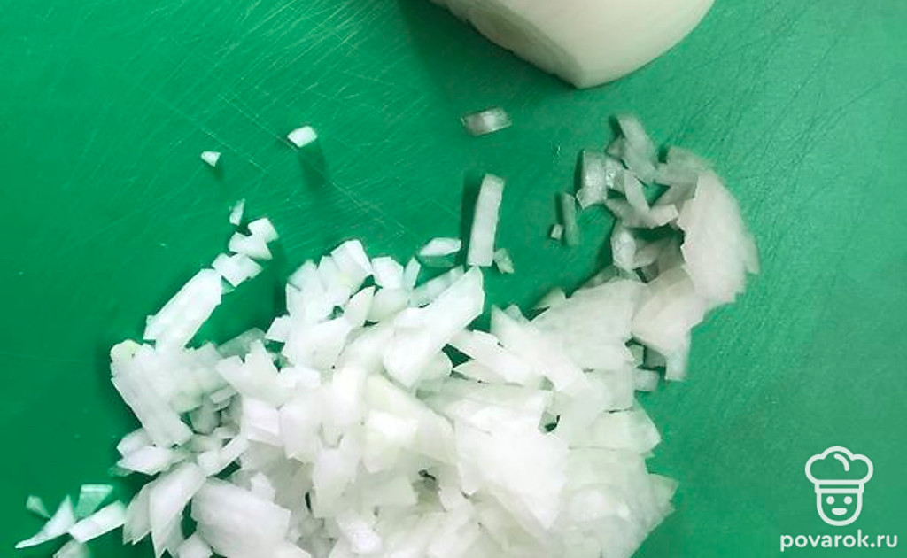 Мелко нарежьте репчатый лук.