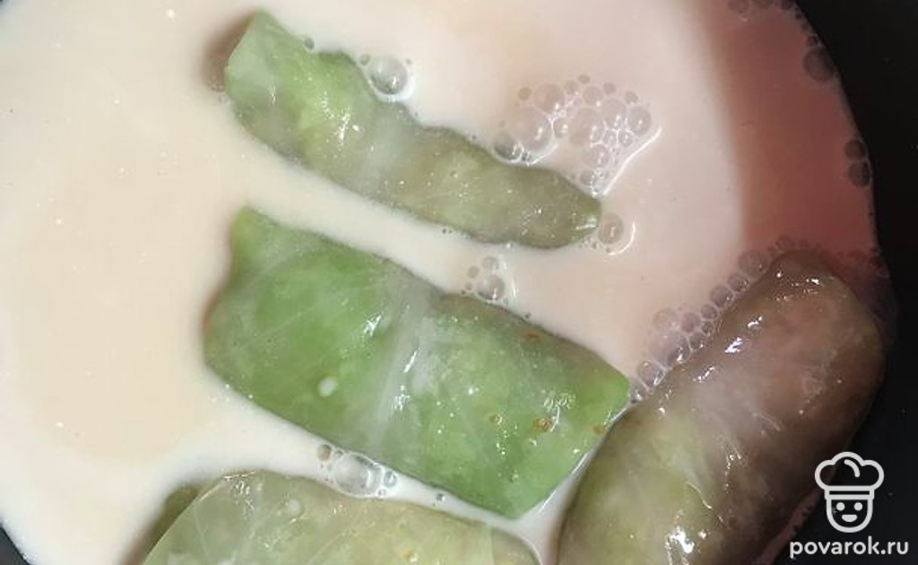 Залейте голубцы получившимся соусом и тушите под закрытой крышкой 1 час 10 минут.