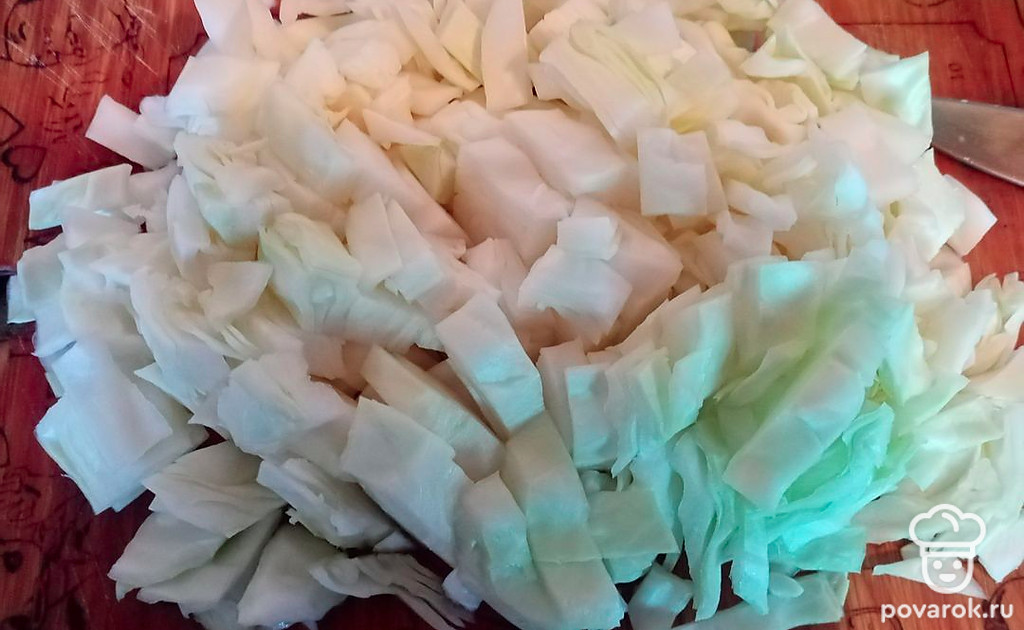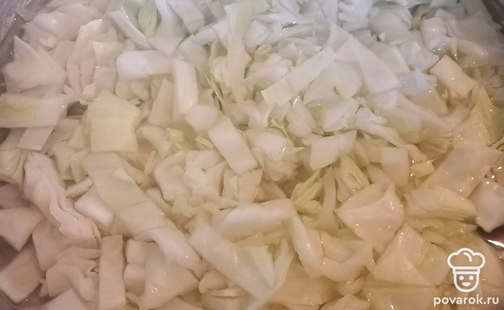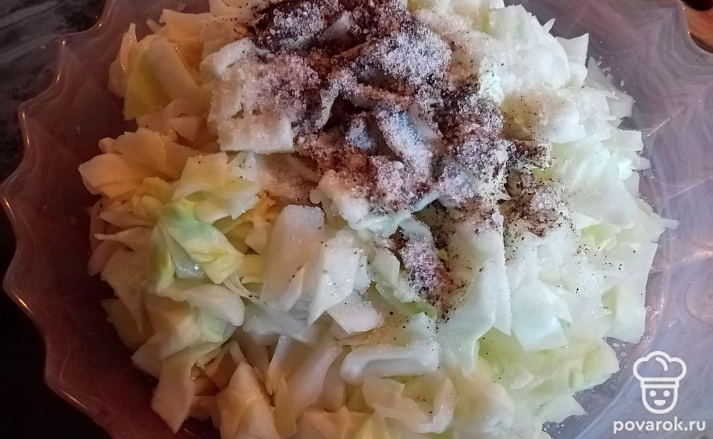 Затем выложить мягкую капусту. Посолить, поперчить.