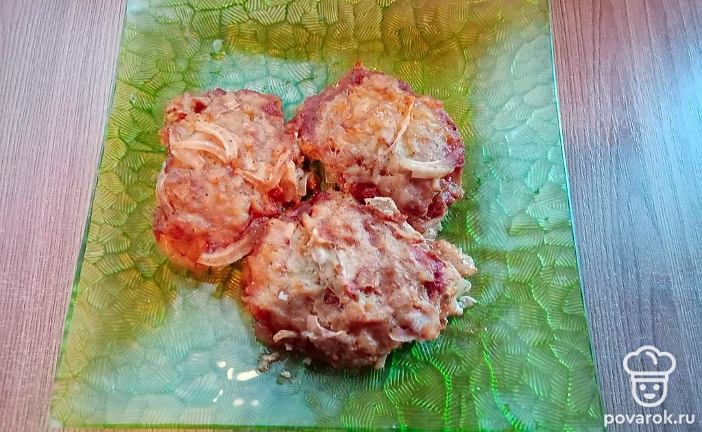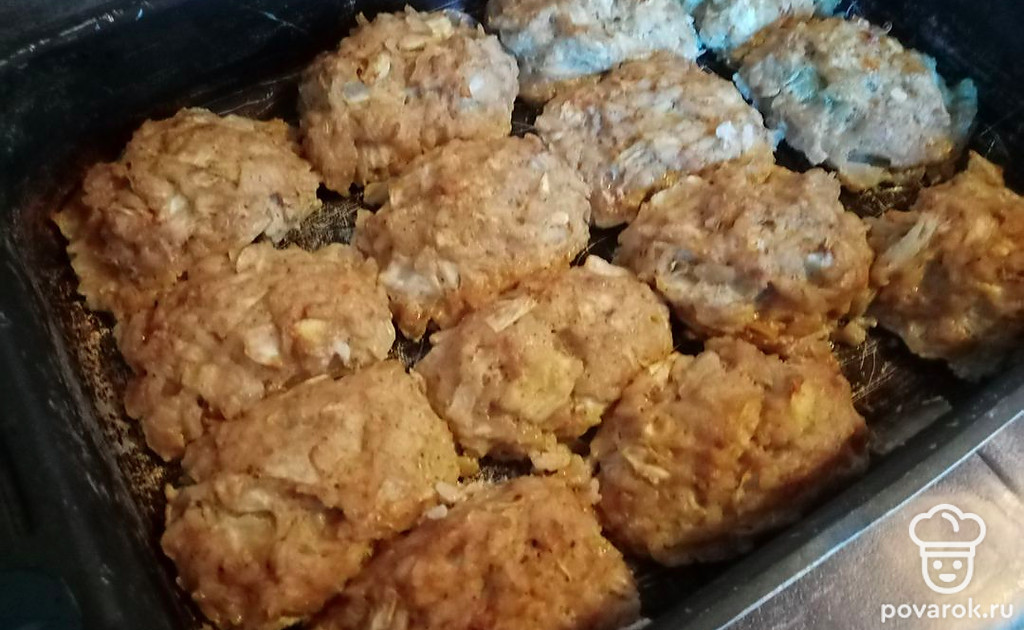 В форму налить немного воды. Сформировать котлетки. Готовить в духовке 40-50 минут при температуре 180 градусов.
