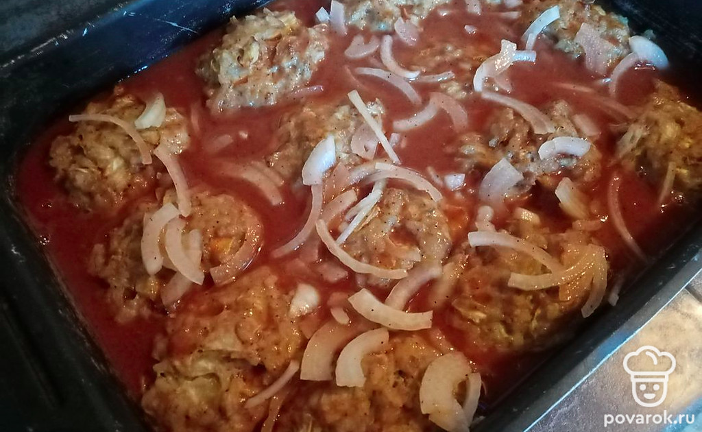 Переложить в форму, чтобы котлетки плотно лежали и равномерно пропитались соусом.