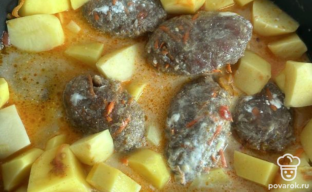 Ленивые голубцы с овощами и картошкой в сметанном соусе