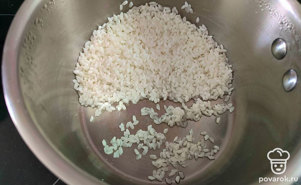 Отварить рис (5 минут), слить воду.