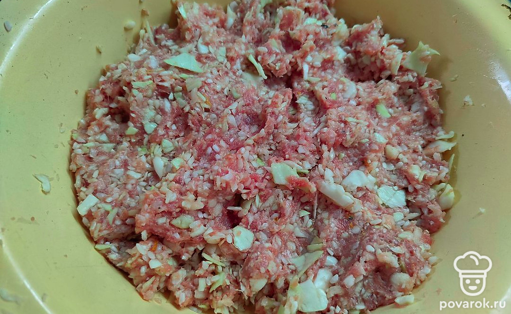 Добавить рис к фаршу.