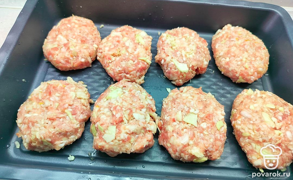Сформировать голубцы и выложить их на противень. Залить водой. Поставить в разогретую до 180 градусов духовку на 40-50 минут.