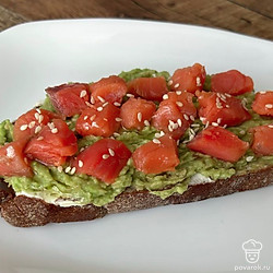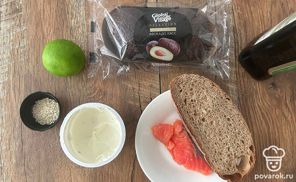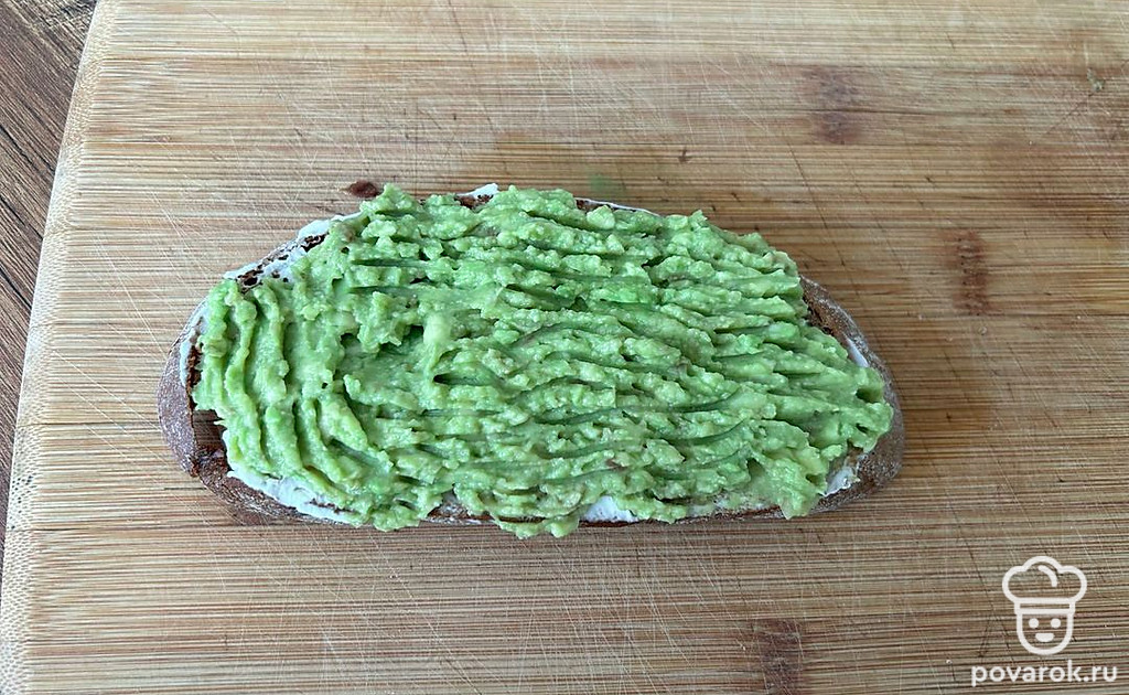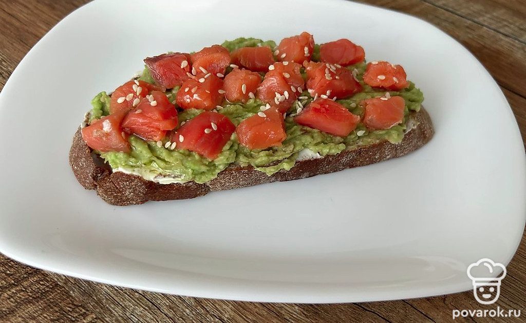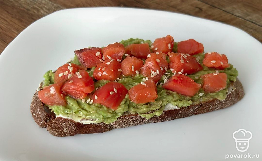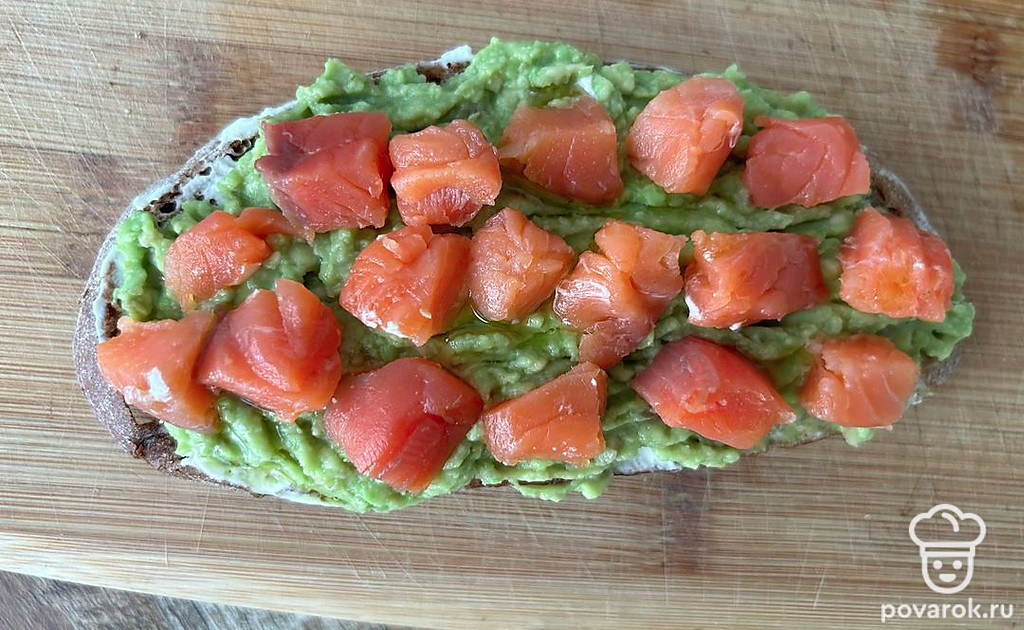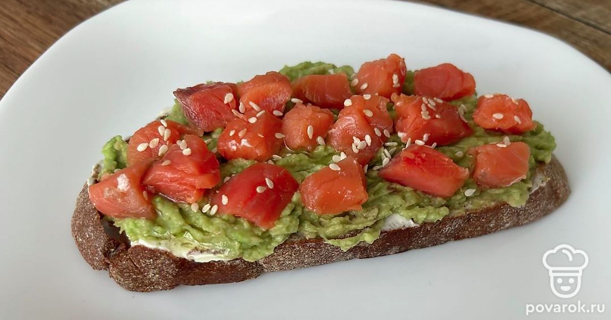 Брускетта в авокадо, творожным сыром и форелью