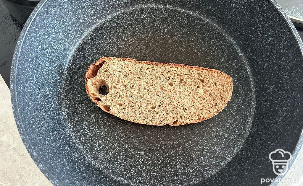 Хлеб обжарьте на сухой сковородке, по 2 минуты с каждой стороны.