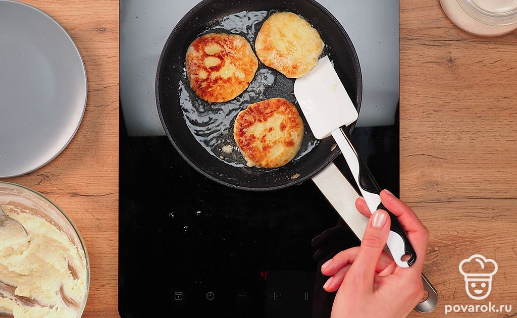 Приготовить классические сырники из творога без муки довольно просто и быстро. Это можно сделать из любого творога — зернистого, обычного или даже творожной массы. Лучше всего брать суховатый и как можно более свежий творог. Если же творог влажный от сыворотки, добавьте в него манную крупу и дайте постоять. Это блюдо можно готовить как на сковороде, так и в духовке. Сырники без муки получаются в любом случае пышные и вкусные.