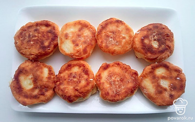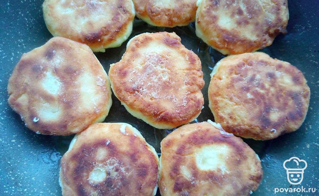 В сковороду налейте масло и разместите там сырники, жарьте блюдо до золотистого цвета с обеих сторон.