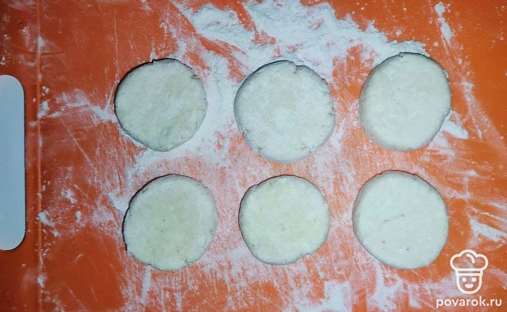 Достаньте полученное тесто из холодильника. Начните формировать круглые сырники, не забывая посыпать их мукой.