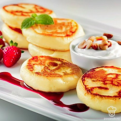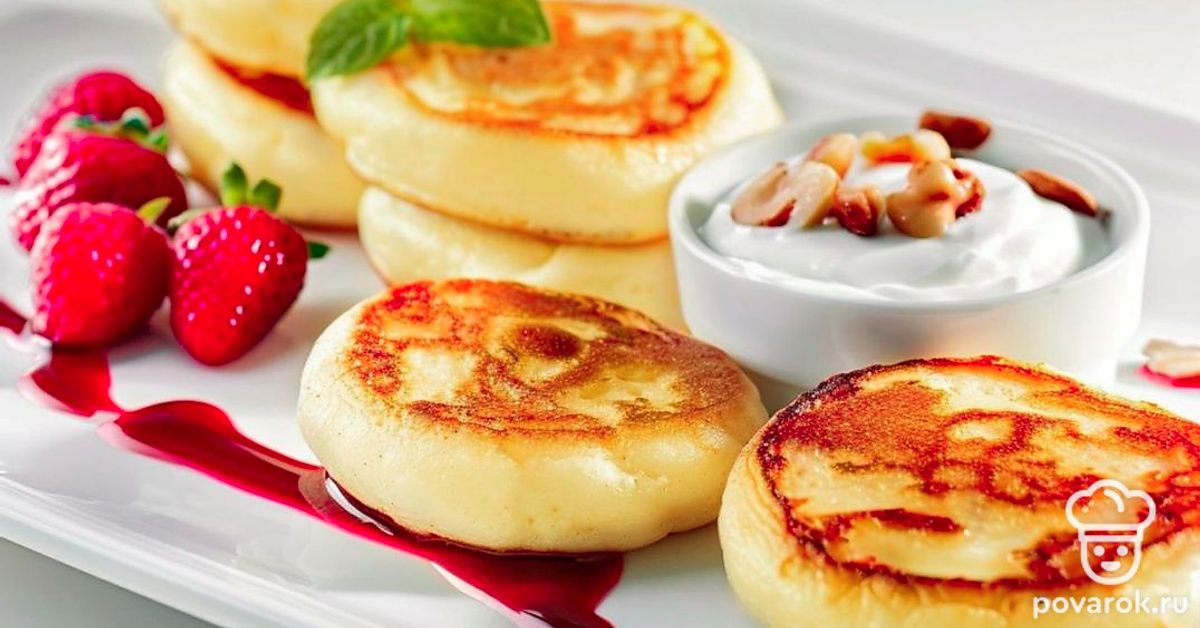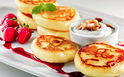 Сырники подавайте со сметаной, орехами, сухофруктами или ягодами. Присыпьте сахарной пудрой.