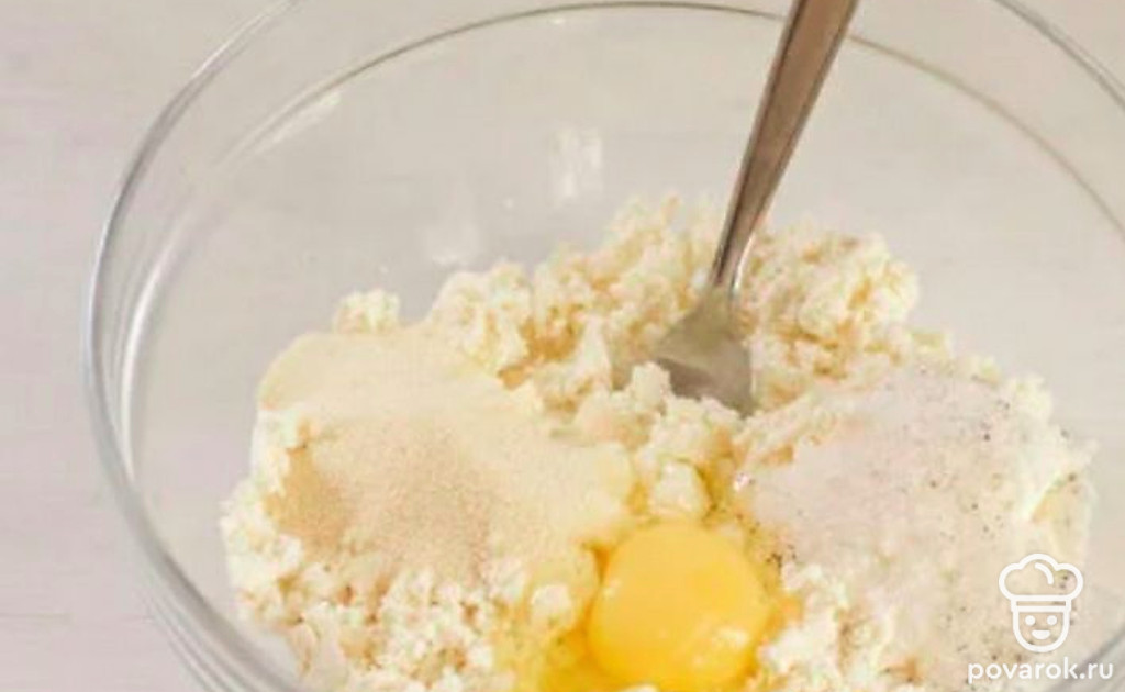 Творожную массу оставьте на 5-10 минут, чтобы манка набухла.
