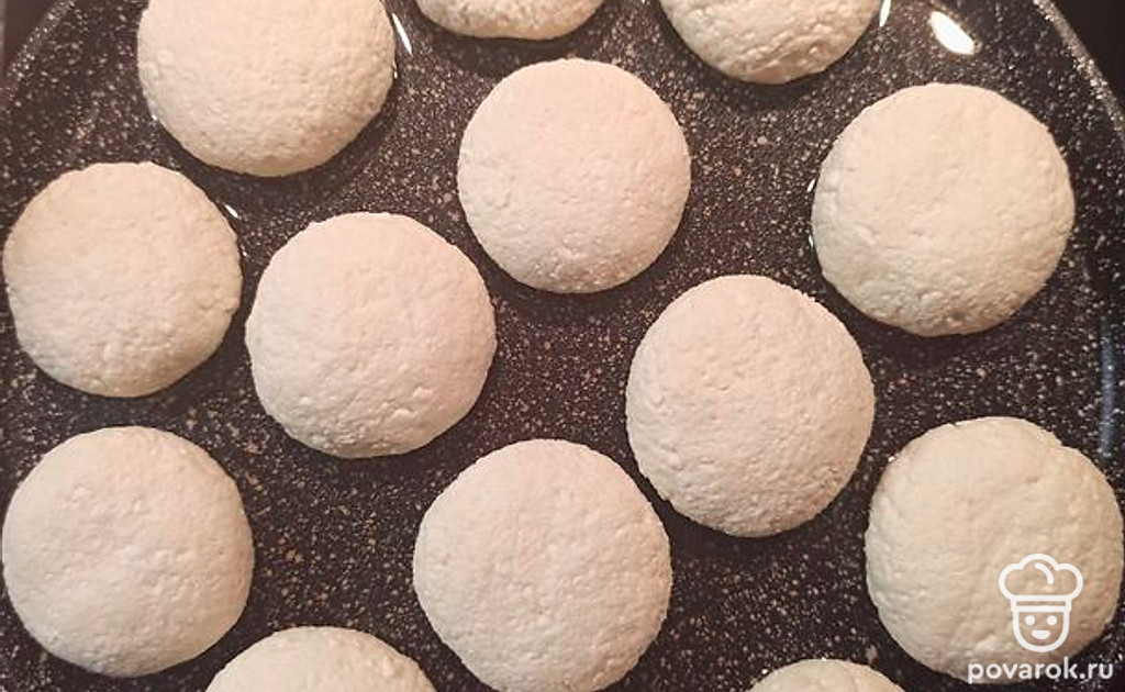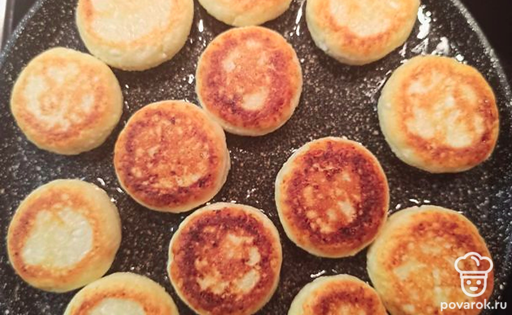 Обжарьте сырники с обеих сторон на слабом огне до румяной корочки.