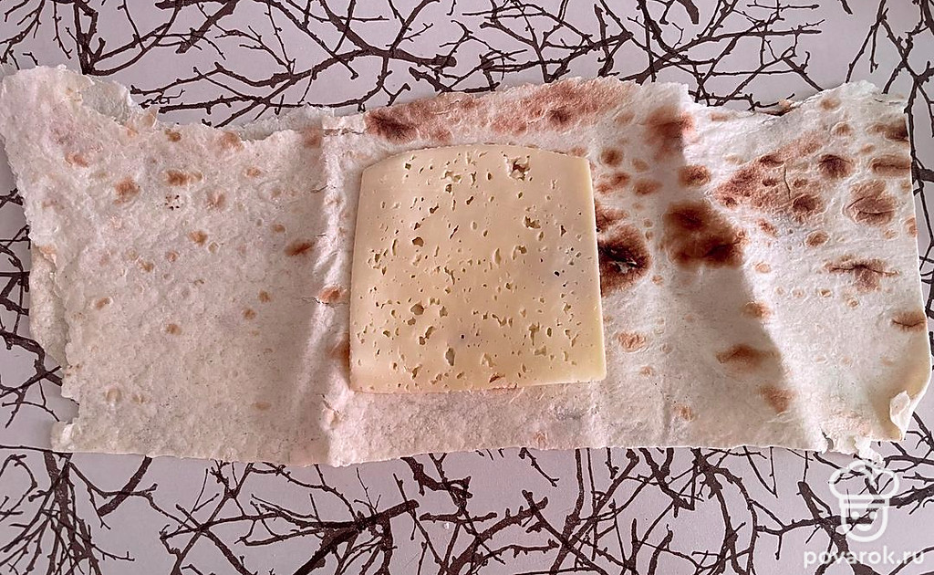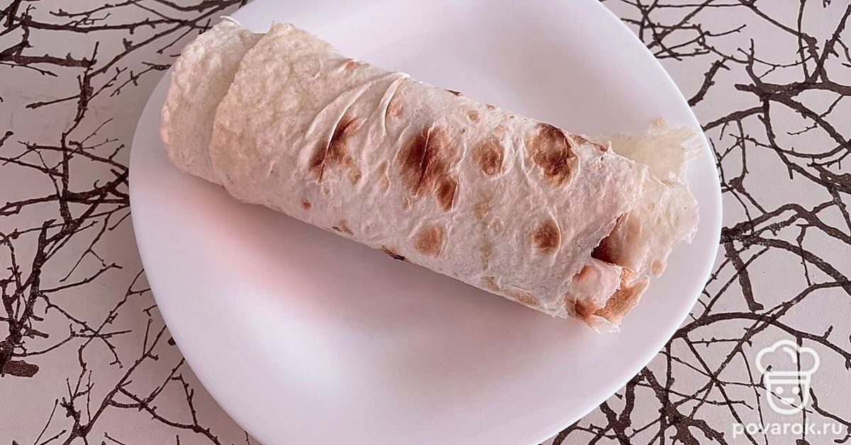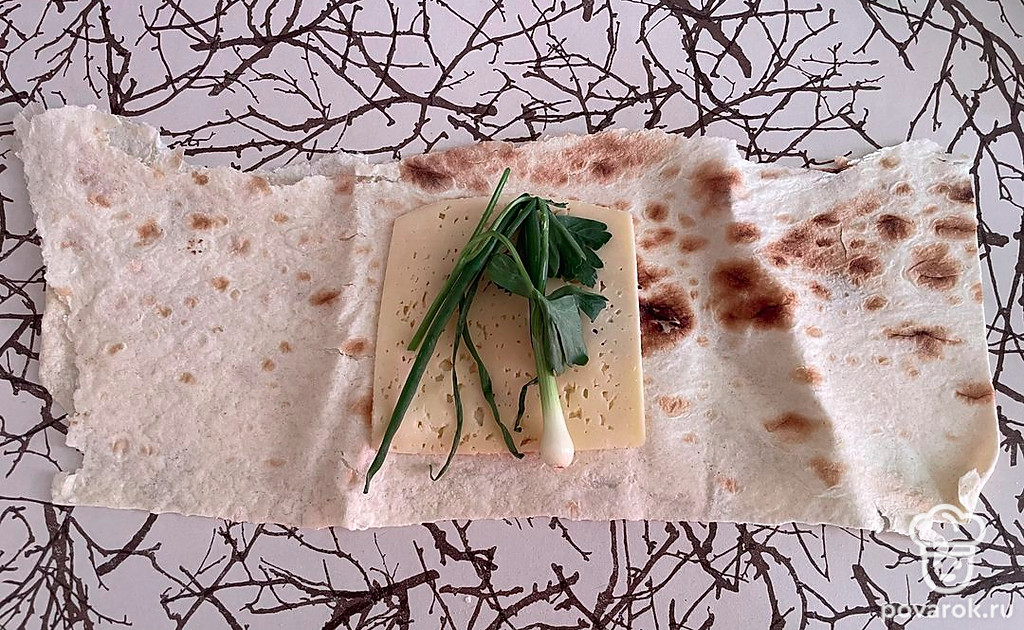 Скрутите ролл. Сначала нижнюю часть, потом по бокам. Слегка подогрейте на сухой сковороде.