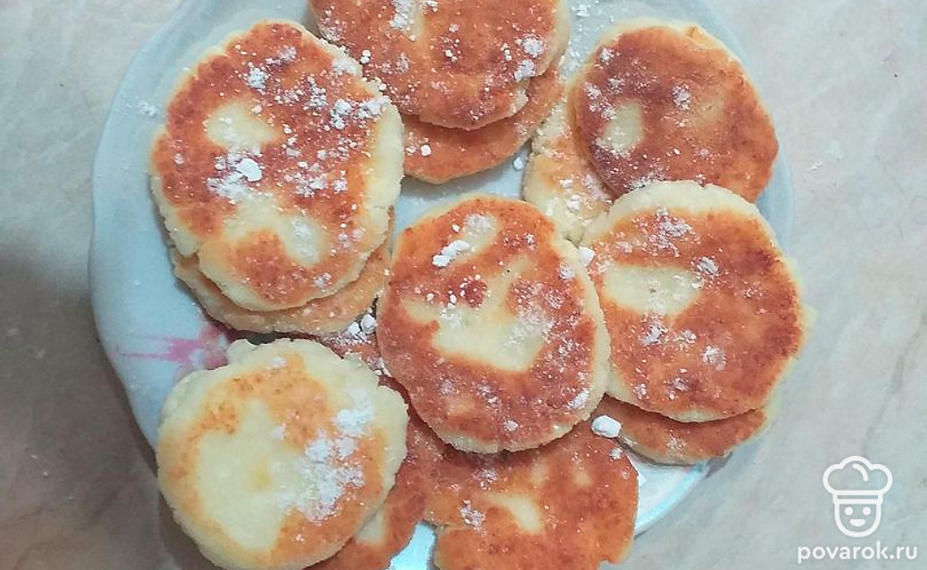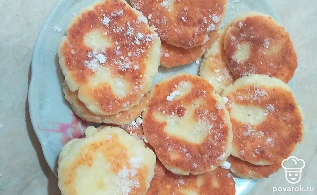 Готовые сырники присыпать сахарной пудрой. Подавать к столу со сметаной, сгущенкой или вареньем. Приятного аппетита!
