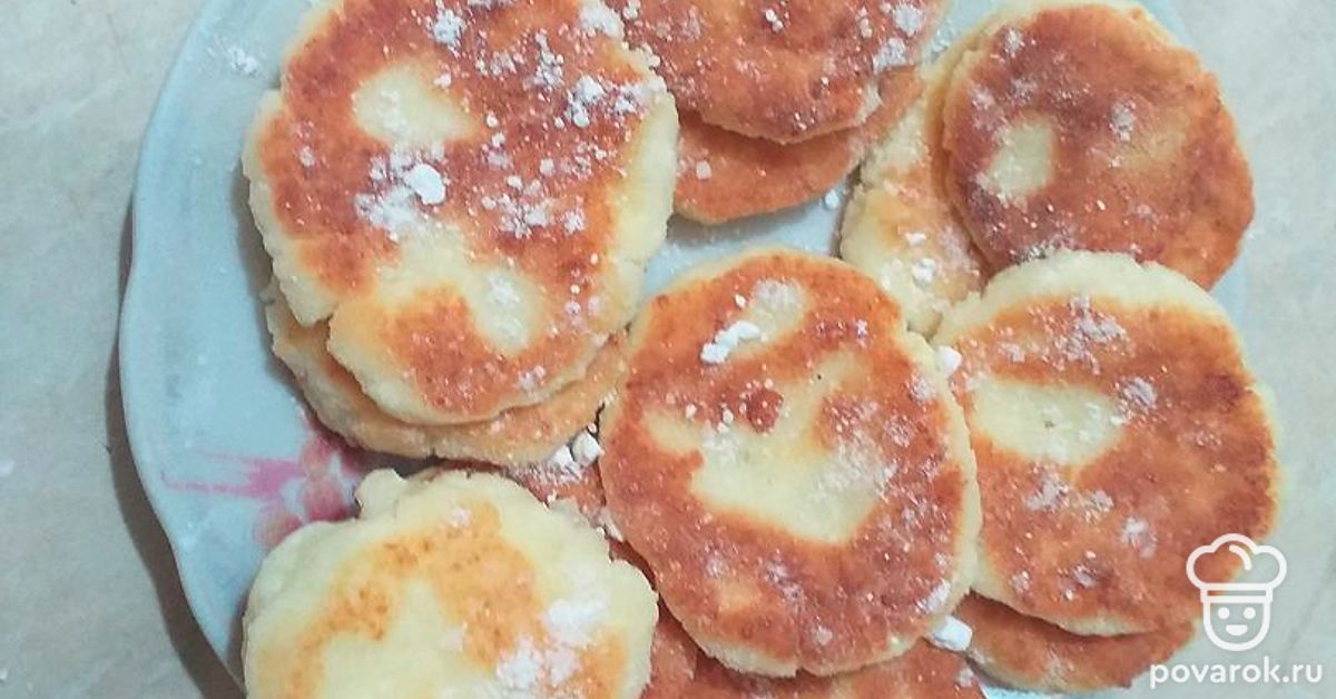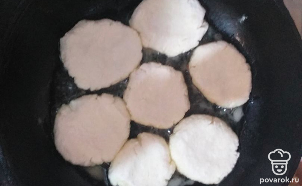 На разогретую, предварительно смазанную маслом сковороду выложить сырники. Жарить до золотистого цвета по 3 минуты с каждой стороны.