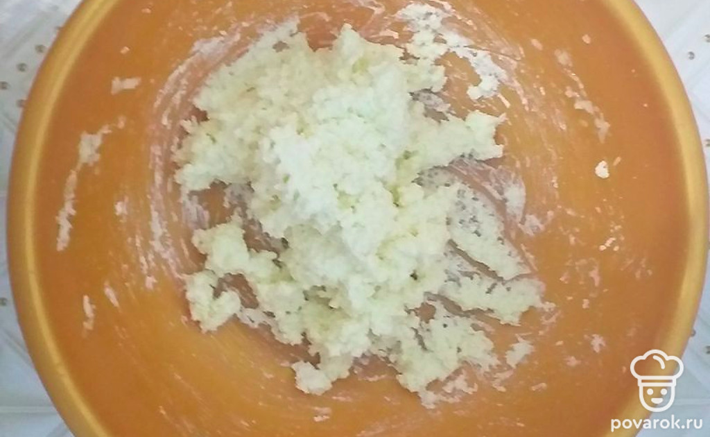 В творог вбить яйцо, всыпать кокосовую стружку, тщательно перемешать до однородной массы, разбивая комочки. Дать массе настояться 5 минут, чтобы кокосовая стружка впитала влагу и стала мягче. Добавить остальные ингридиенты, тщательно перемешать.