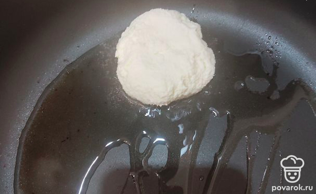 Разогреть сковороду и обжарить с двух сторон сырники до золотистой корочки на умеренном огне. После обжарки накрыть крышкой и подержать еще пару минут на очень медленном огне.