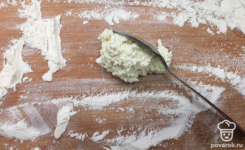 Наберите творог в объеме одной столовой ложки с горкой.