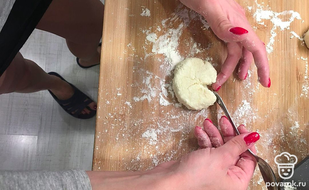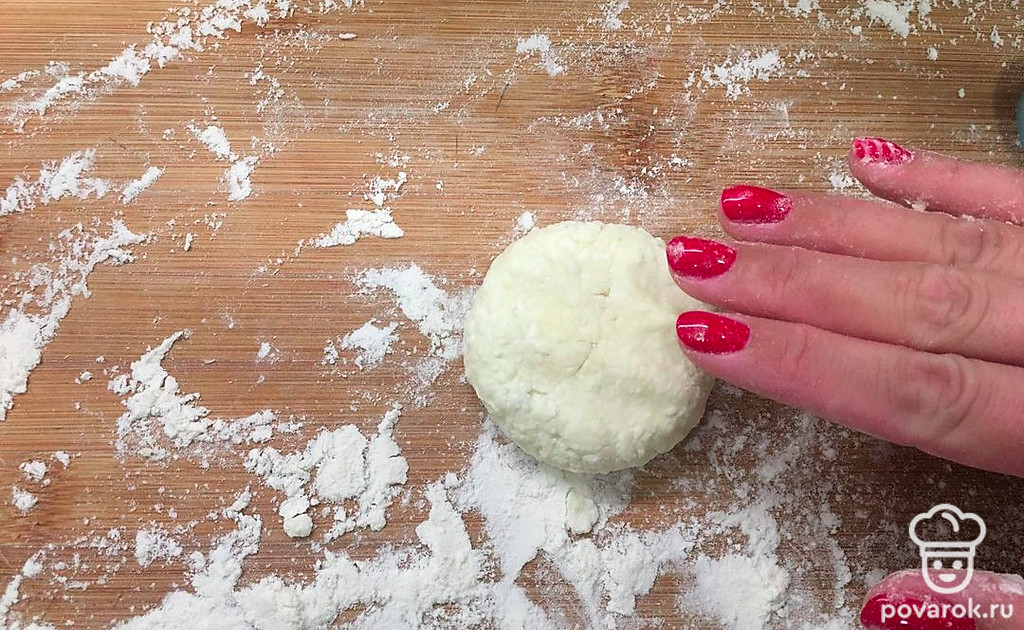На доске, присыпанной мукой, сделайте шарик.
