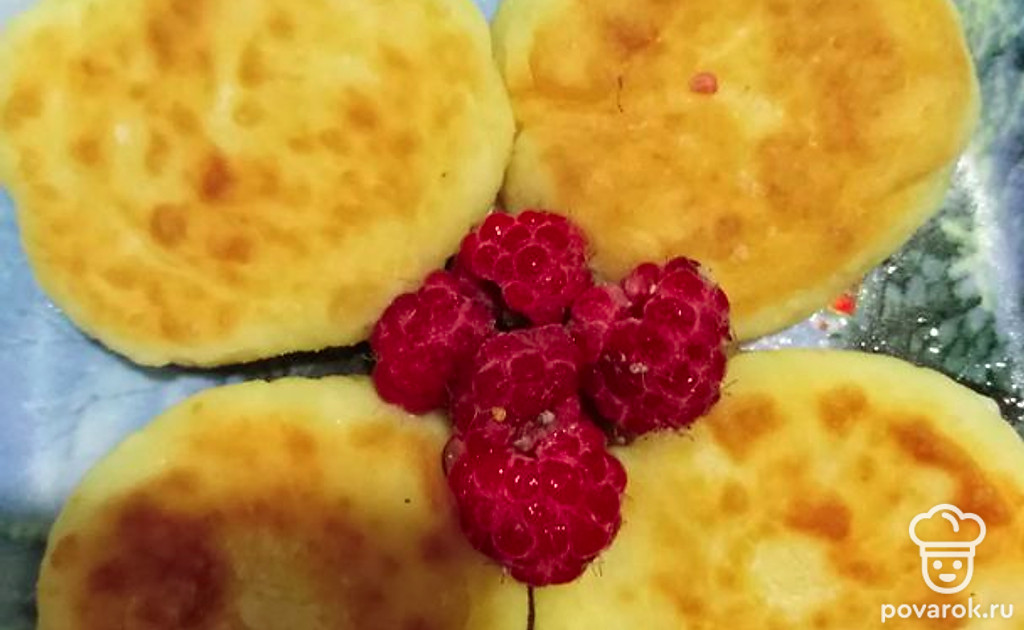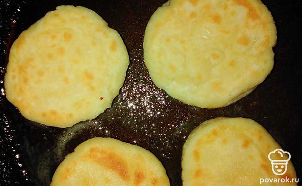 На горячую сковороду, смазанную маслом, выложите сырники и жарьте до корочки. Огонь должен быть средний, обжаривайте с двух сторон.