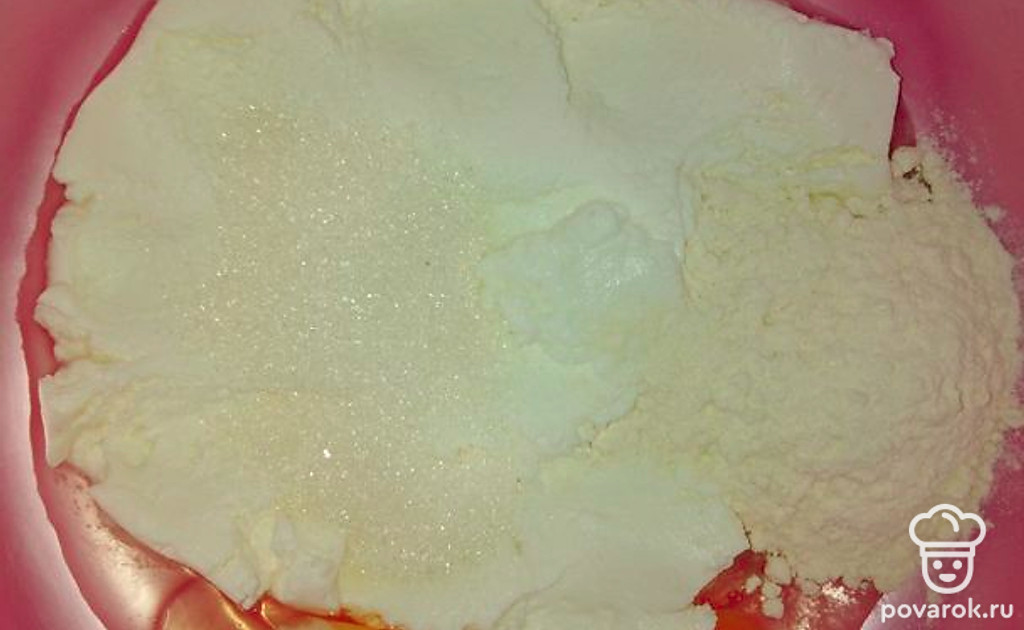 Возьмите творог, сахар, яйцо и муку и тщательно перемешайте в миске. Масса для сырников не должна быть слишком сухой или влажной. Она должна собираться в ком и держать форму. При необходимости добавьте ещё муки.