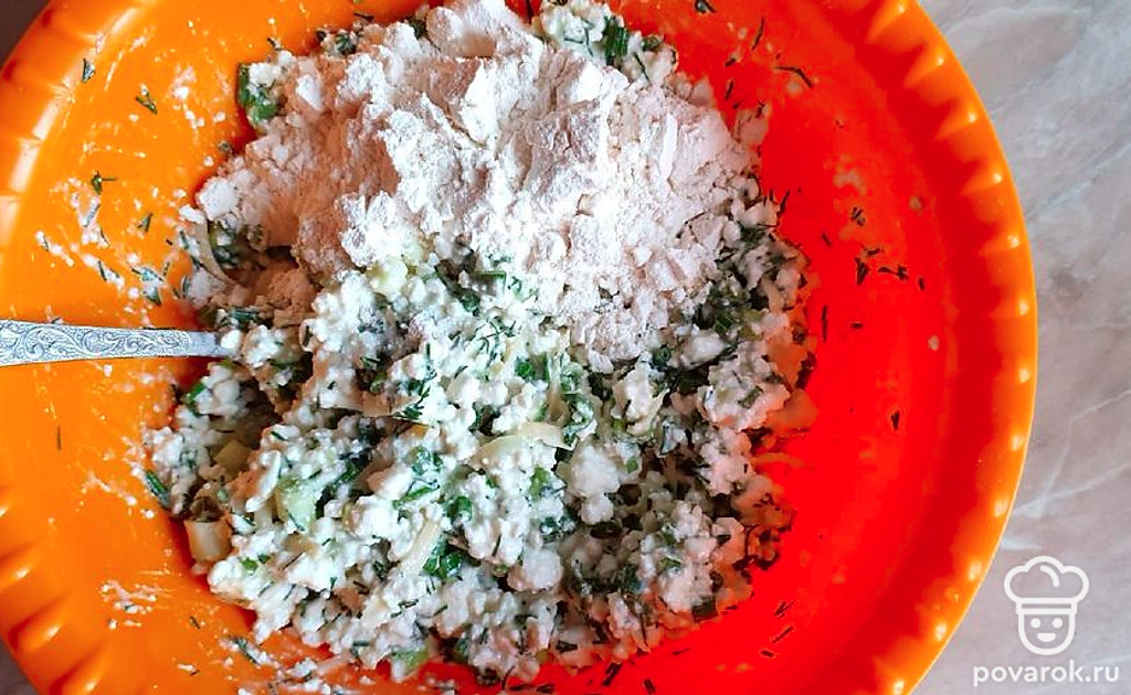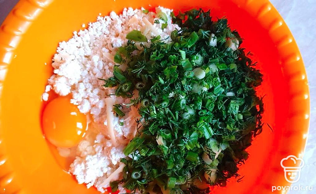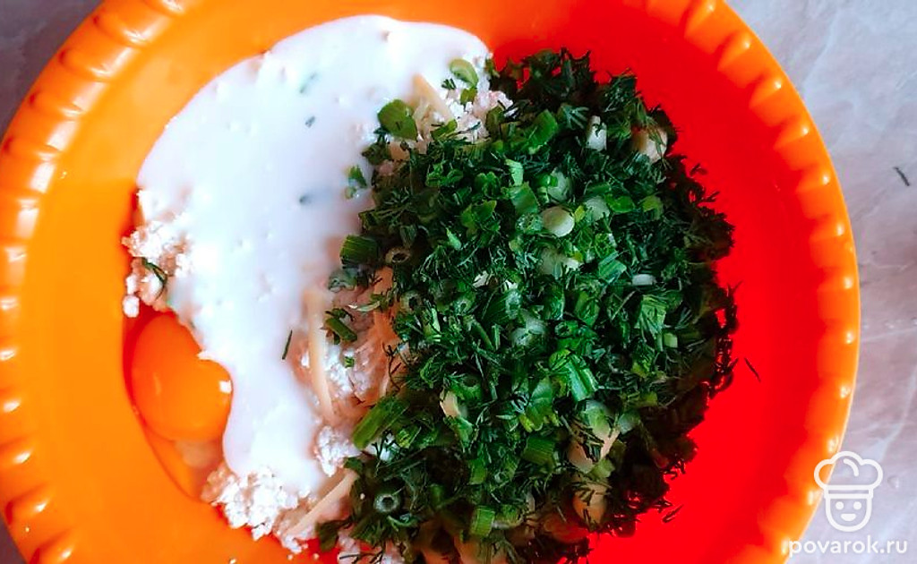 Свежую зелень (петрушка, укроп, зеленый лук и др.) мелко порезать и добавить в смесь.