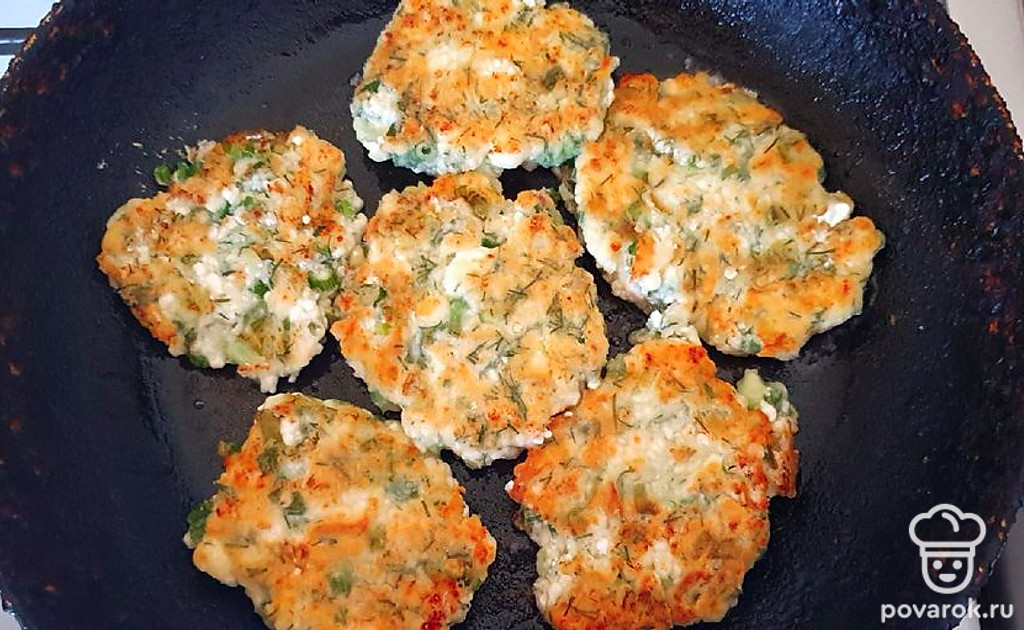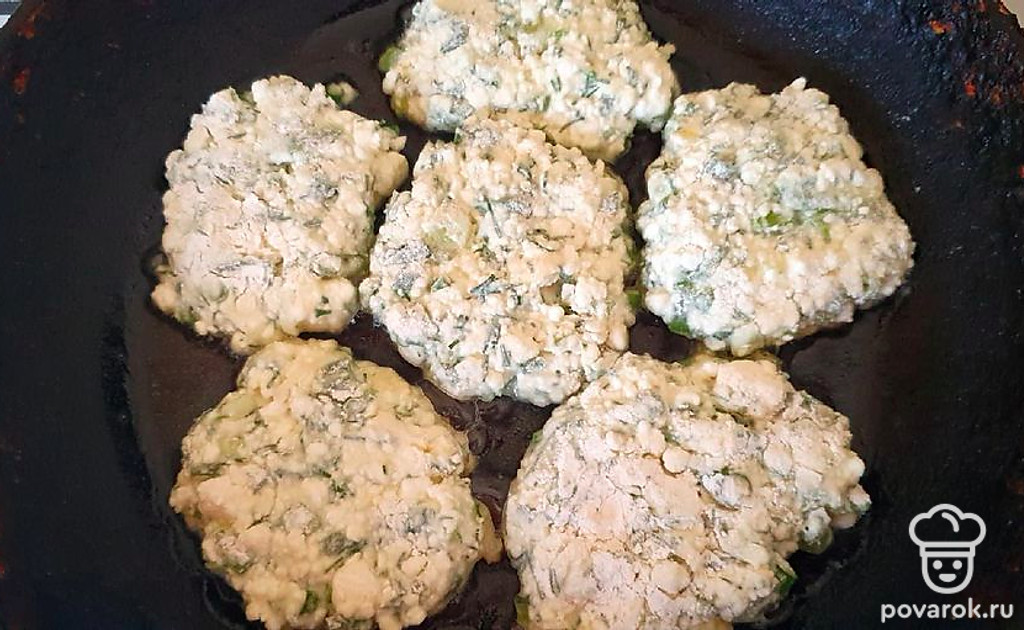 Когда сырники обжарятся с одной стороны, их перевернуть, накрыть крышкой и готовить еще 5 минут.