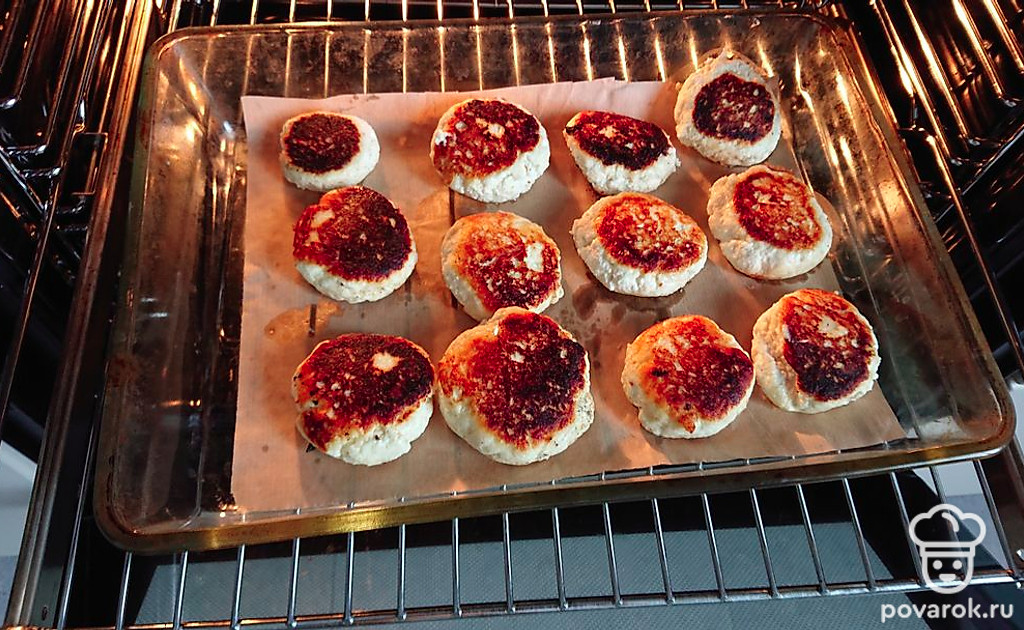 Обжаренные сырники потомить в духовке 10 минут на 180 градусах.