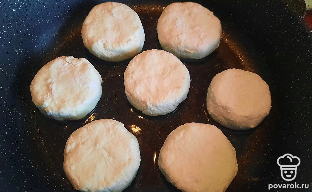 Разогреть сковороду с небольшим количеством масла и обжарить на небольшом огне с одной стороны до зарумянивания. Перевернуть, убавить огонь и жарить до румяной корочки.