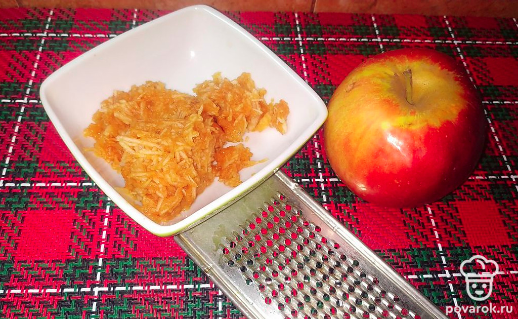 Яблоко очистить от кожуры и натереть на мелкой тёрке.
