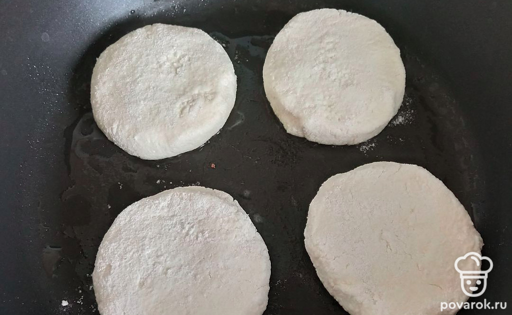 Вылейте на сковороду немного масла, сформируйте творожные шарики, затем придайте им форму сырников. Обжаривайте на медленном огне с двух сторон до появления золотистой корочки.