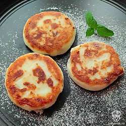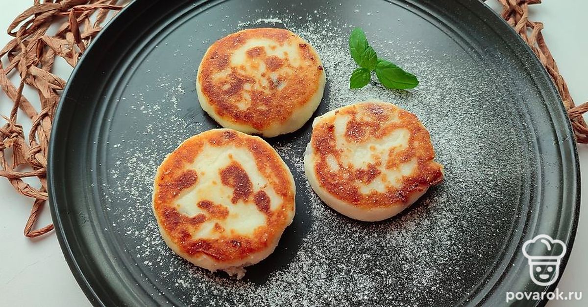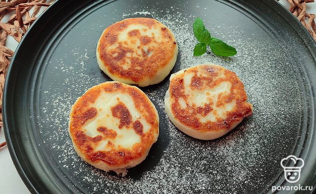 Сформировать сырник на муке. Я использую стакан, чтобы он был ровный. Слегла приплюсну и воду стаканом по муке. Жарю с двух сторон. До золотистой корочки или запекаю при 180 градусах около 10 минут. Если замораживаю, то потом не размораживают, сразу на противень.