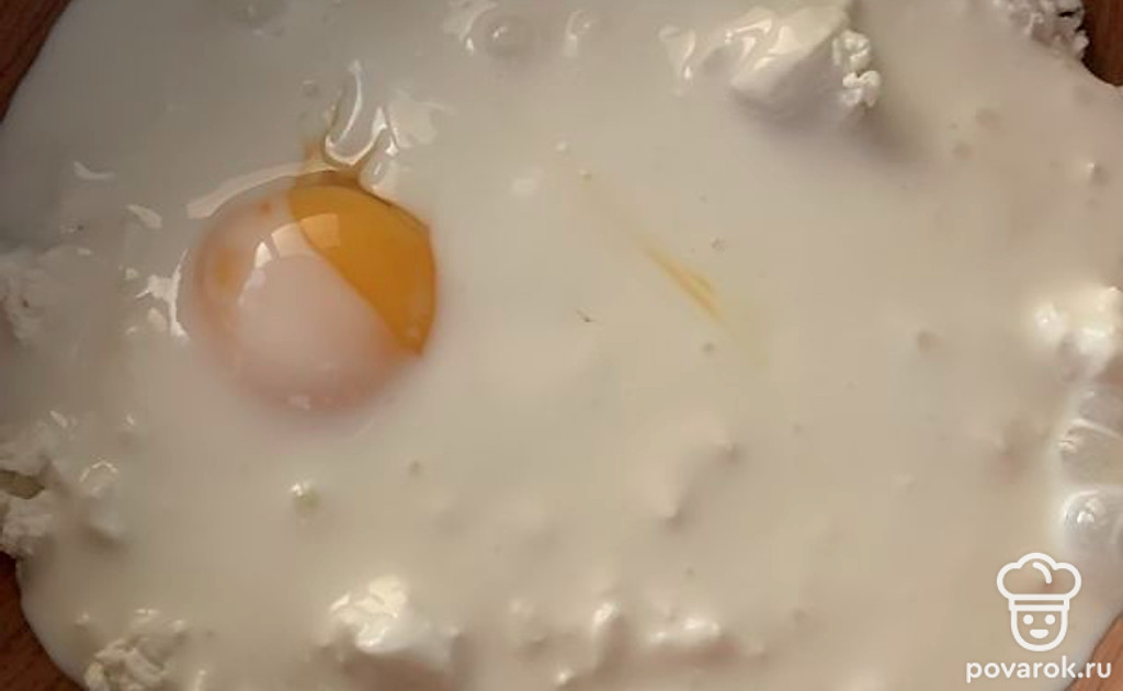 Добавляем молоко и хорошо перемешиваем блендером, что бы творог не был комками.