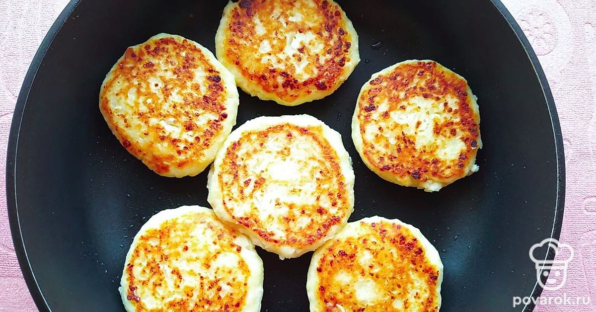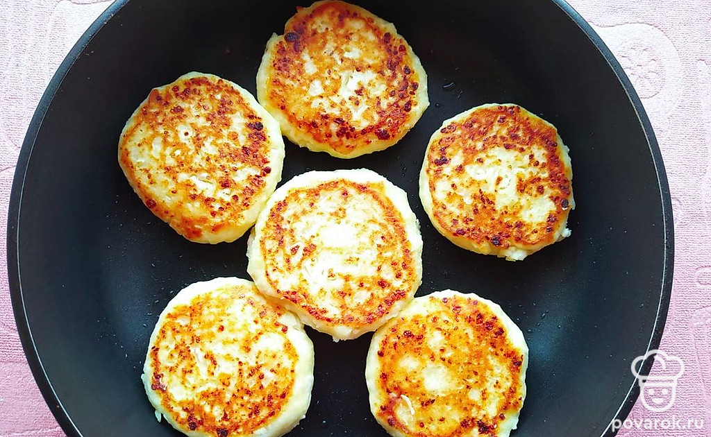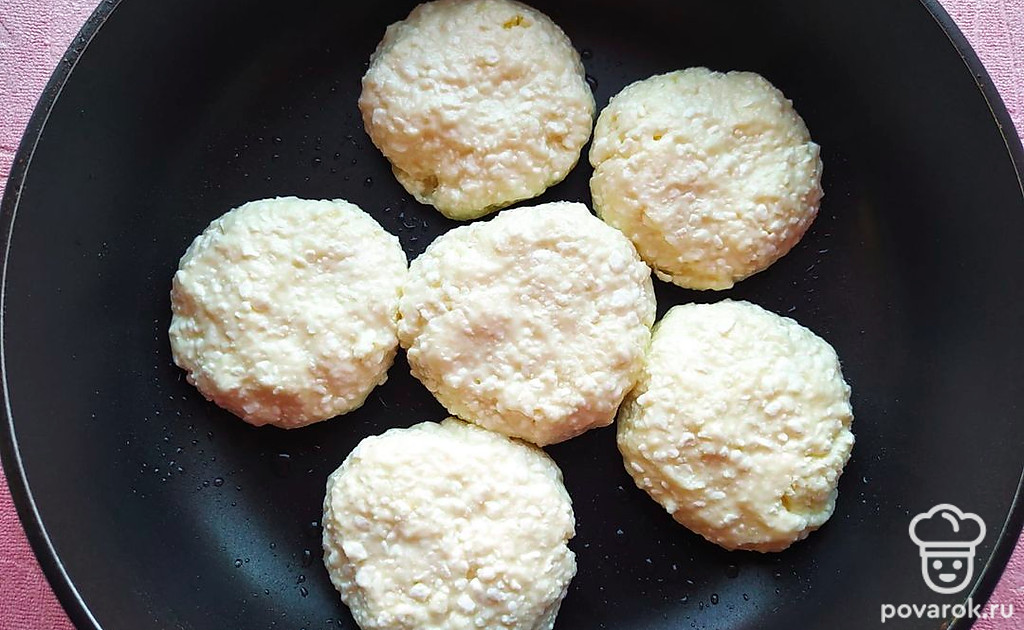 Формировать сырники мокрыми руками, чтобы масса не прилипала к рукам. Готовые сырники выложить в разогретую сковороду и обжаривать на растительном масле с двух сторон на большом огне. Далее тушить 10 минут на медленном огне под крышкой. Готово!
