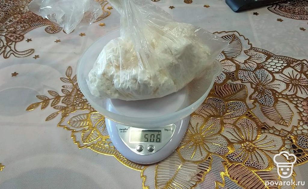 Хорошо вымешиваем и делим на равные части, предварительно присыпав рабочую поверхность мукой.