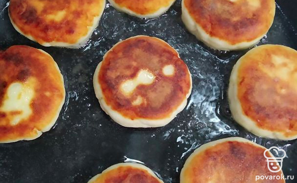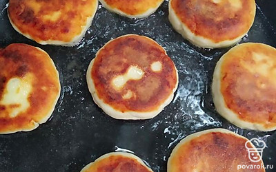 На разогретую сковороду с растительным маслом выкладываем сырники. Жарим с двух сторон, до золотистой корочки.
