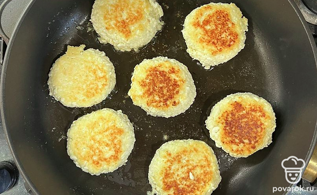 Сырники перевернуть, жарить с обратной стороны еще 10 минут.