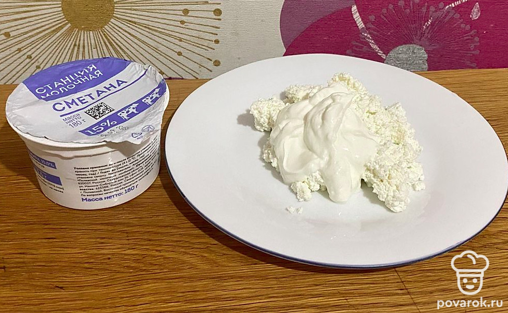 К творожной массе добавляем 2 столовые ложки сметаны.