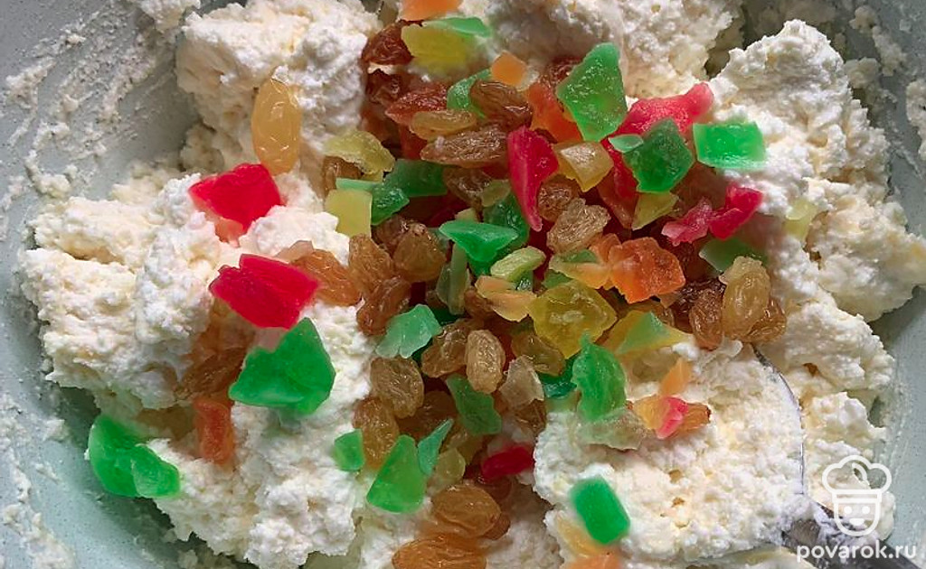 Добавить пропаренный изюм и цукаты.