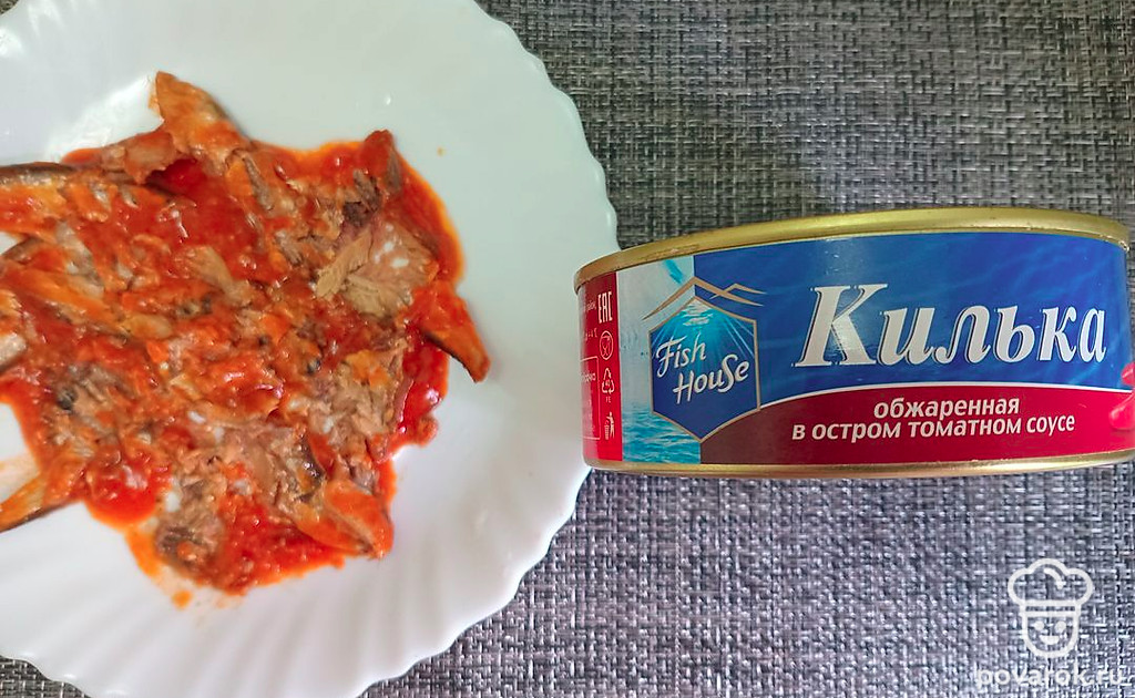 Кильку в томате разомните вилкой.