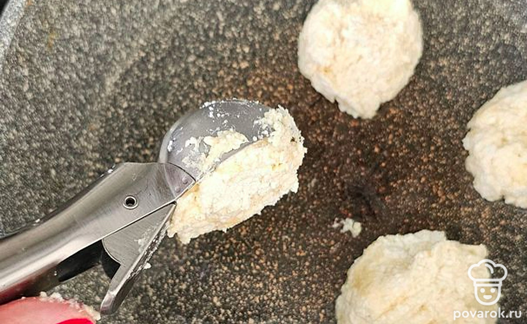 Сформируйте сырники. Я делаю это с помощью ложки для мороженого.