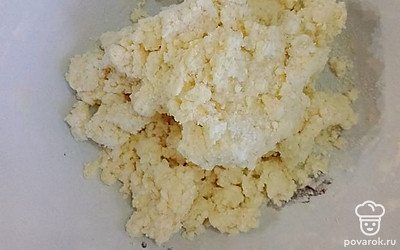 Смешайте творог, сахар, муку и желток.