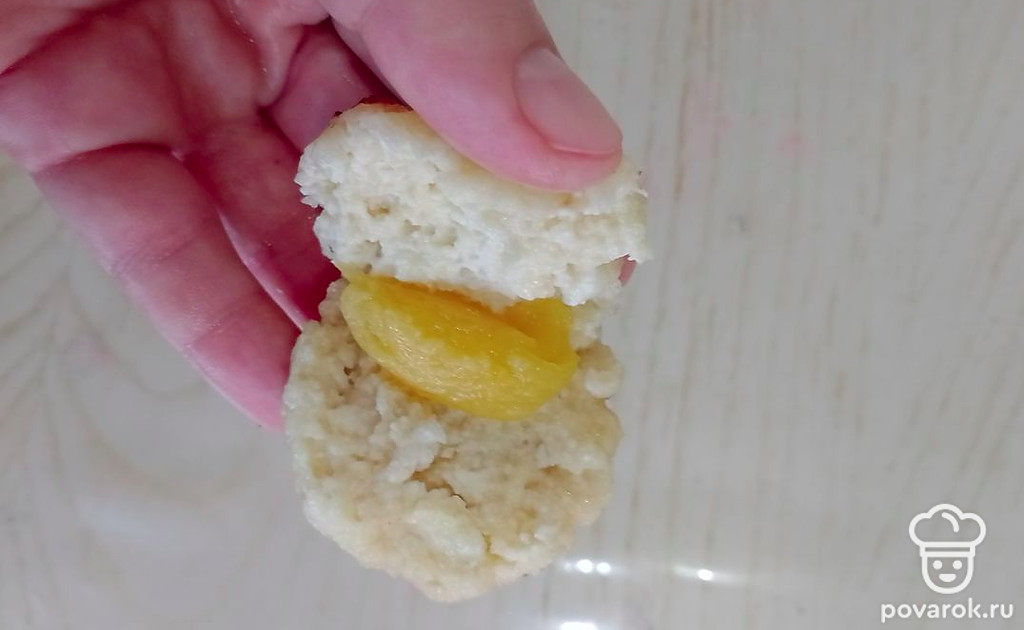 Сформируйте сырники. В середину положите кусочек манго.