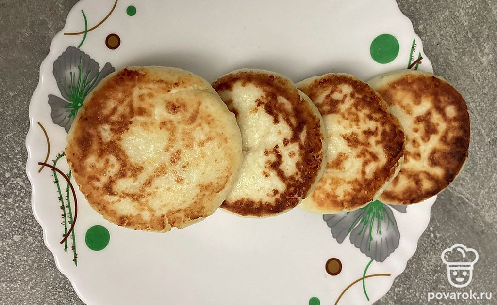 Обжарьте сырники с двух сторон до появления румяной корочки.