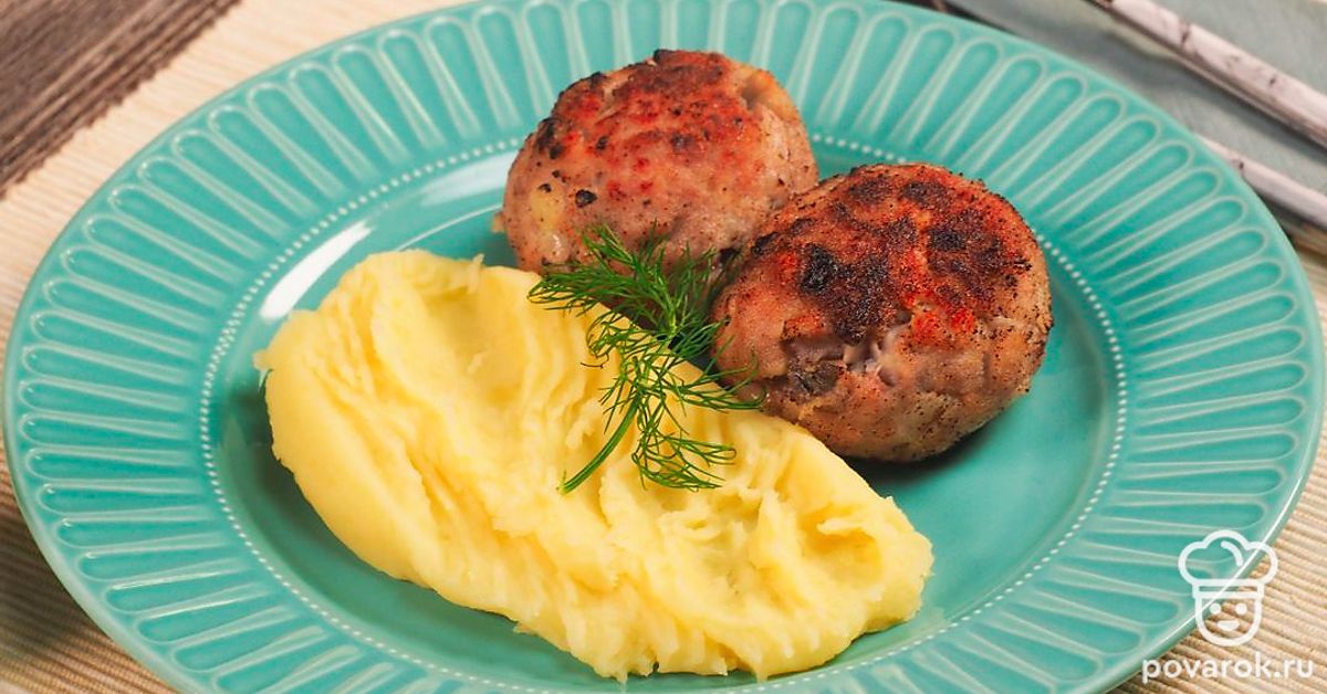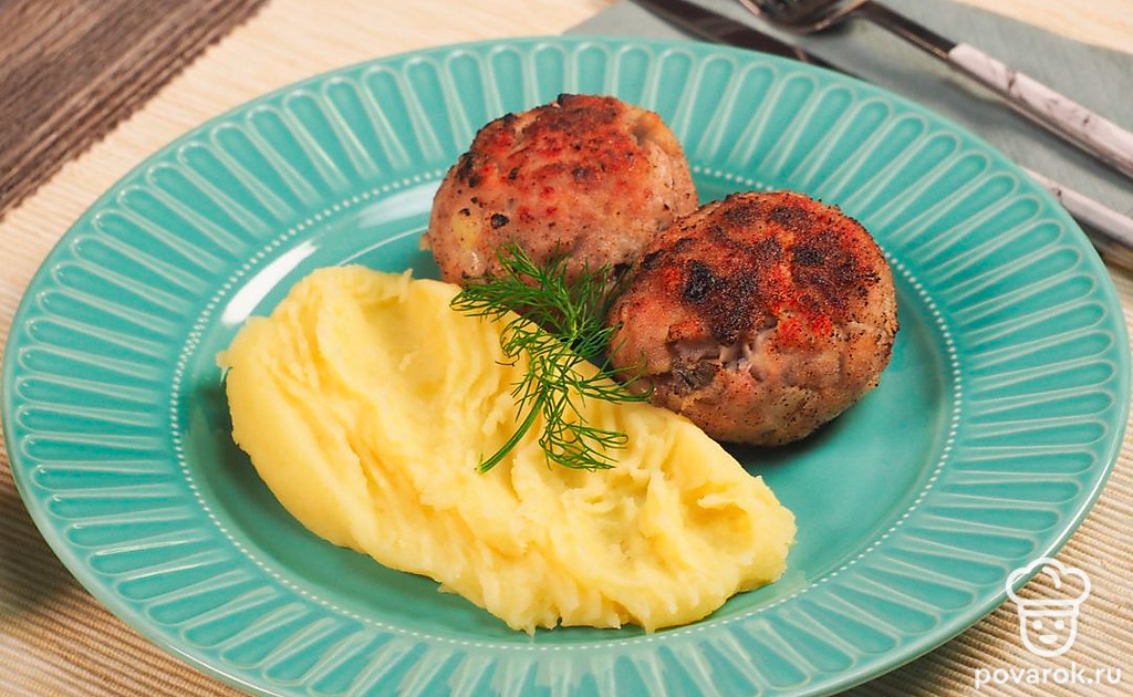 Котлеты из индейки с грибами выложите на порционные тарелки и подавайте с картофельным пюре.