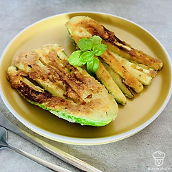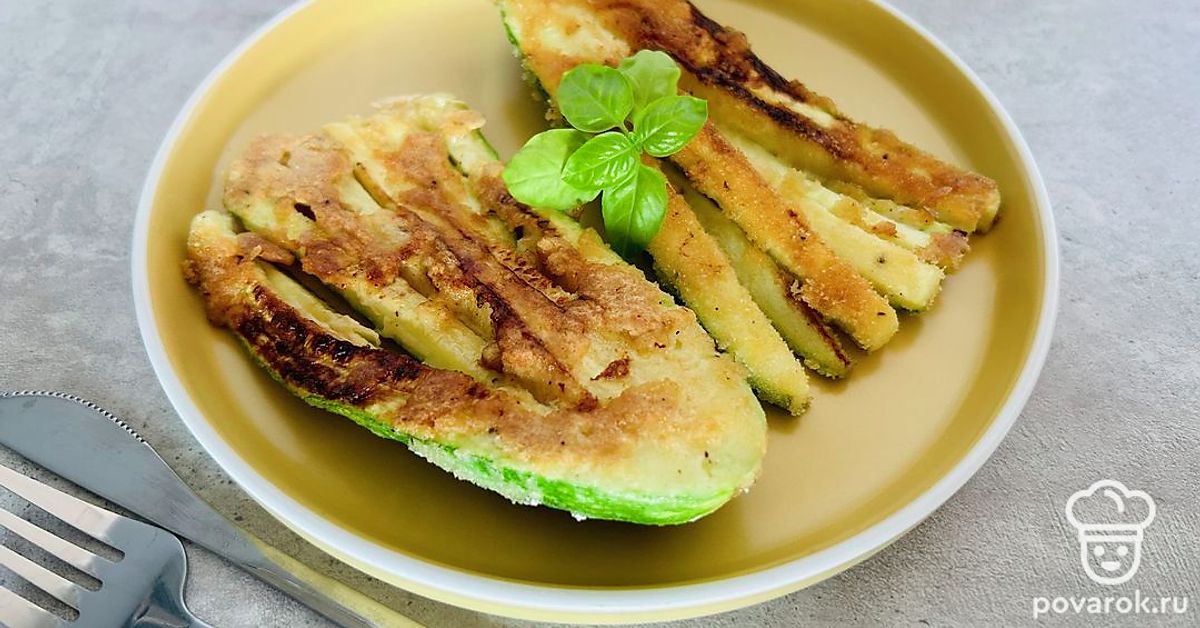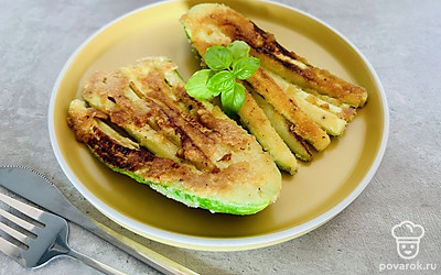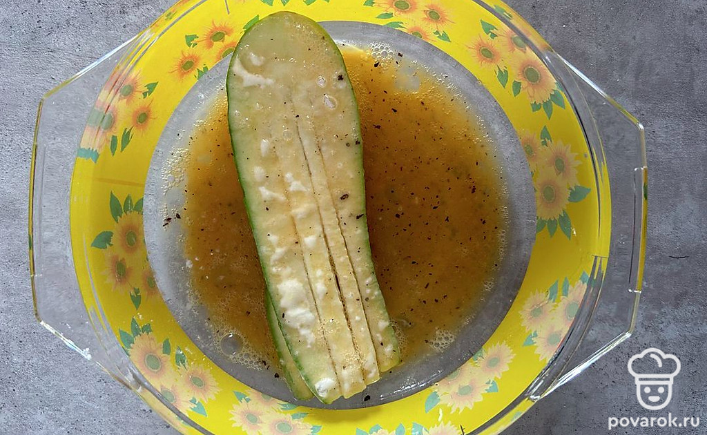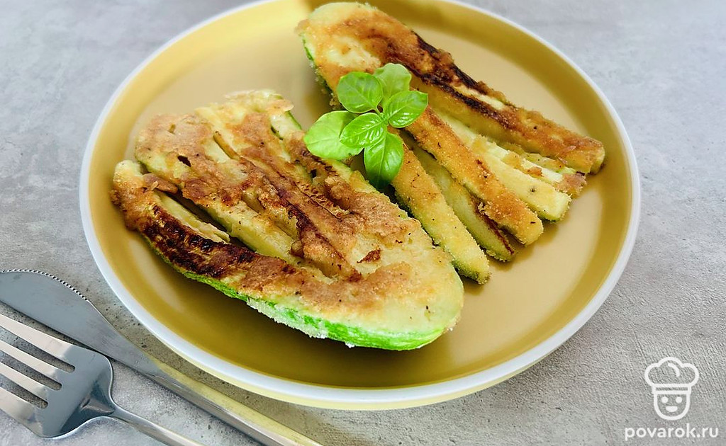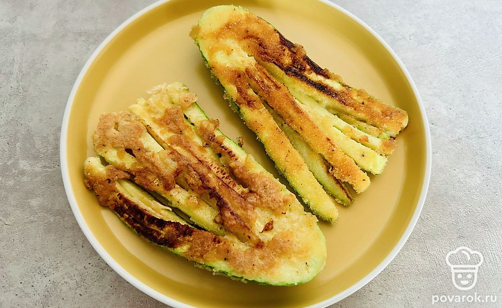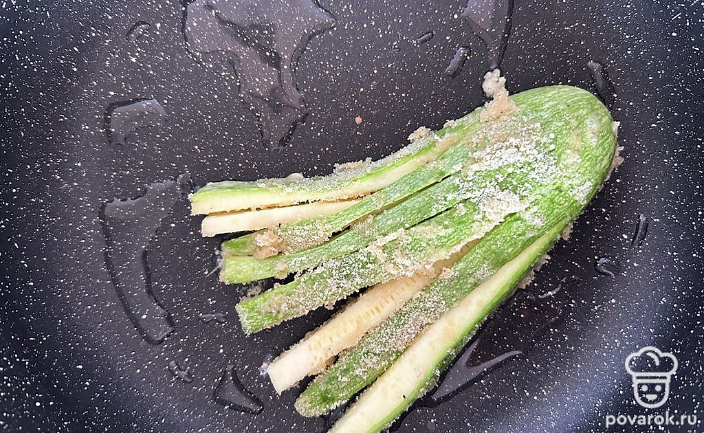 Обжарьте на растительном масле кабачок (примерно по 3-4 минуты с каждой стороны).