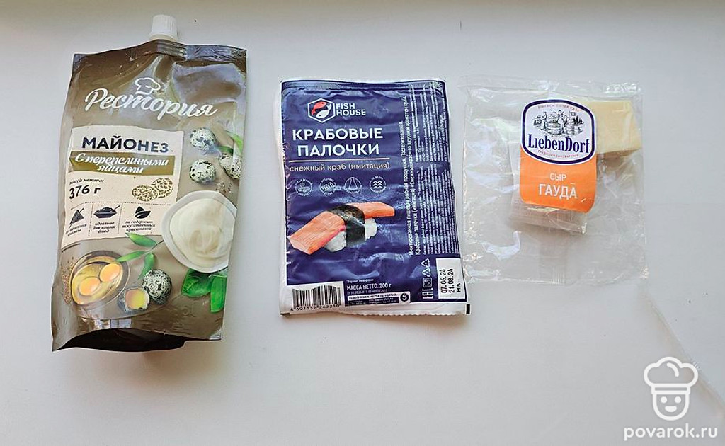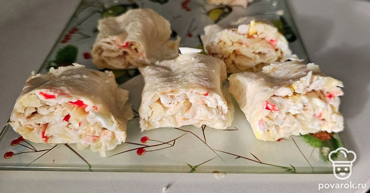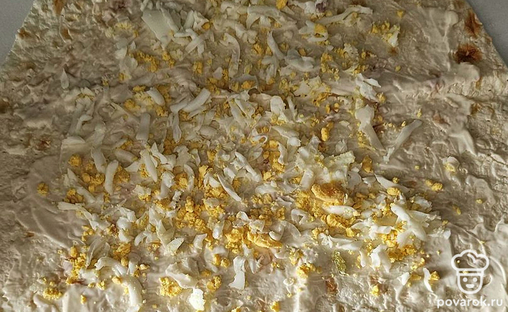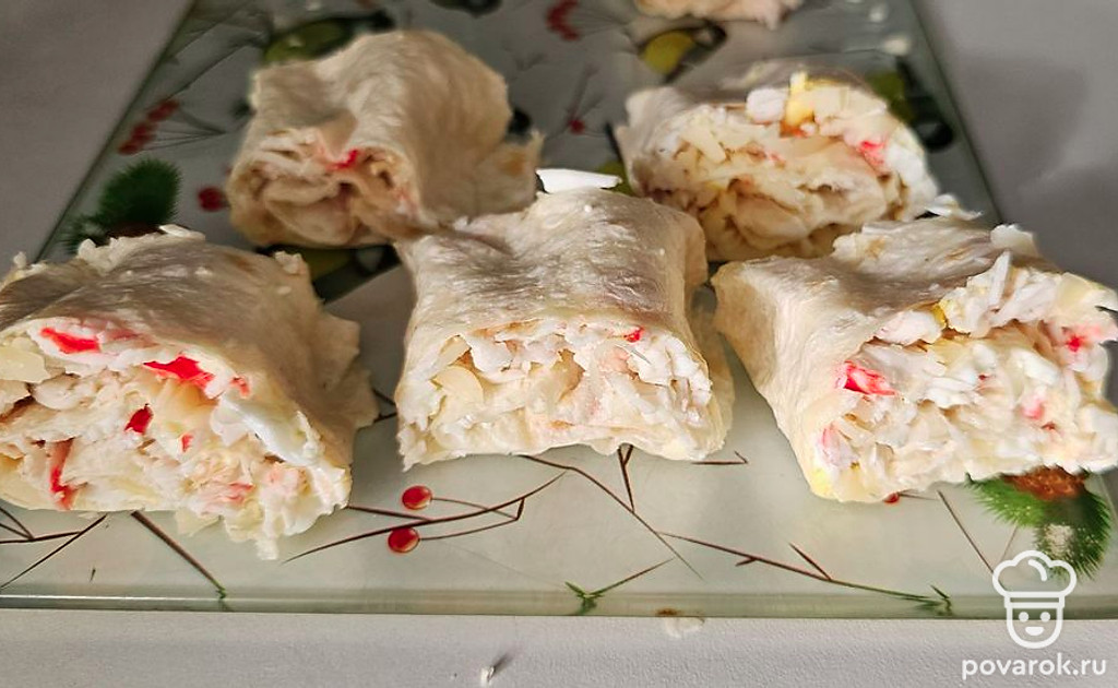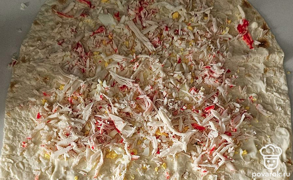 Лаваш с сыром, майонезом и крабовыми палочками