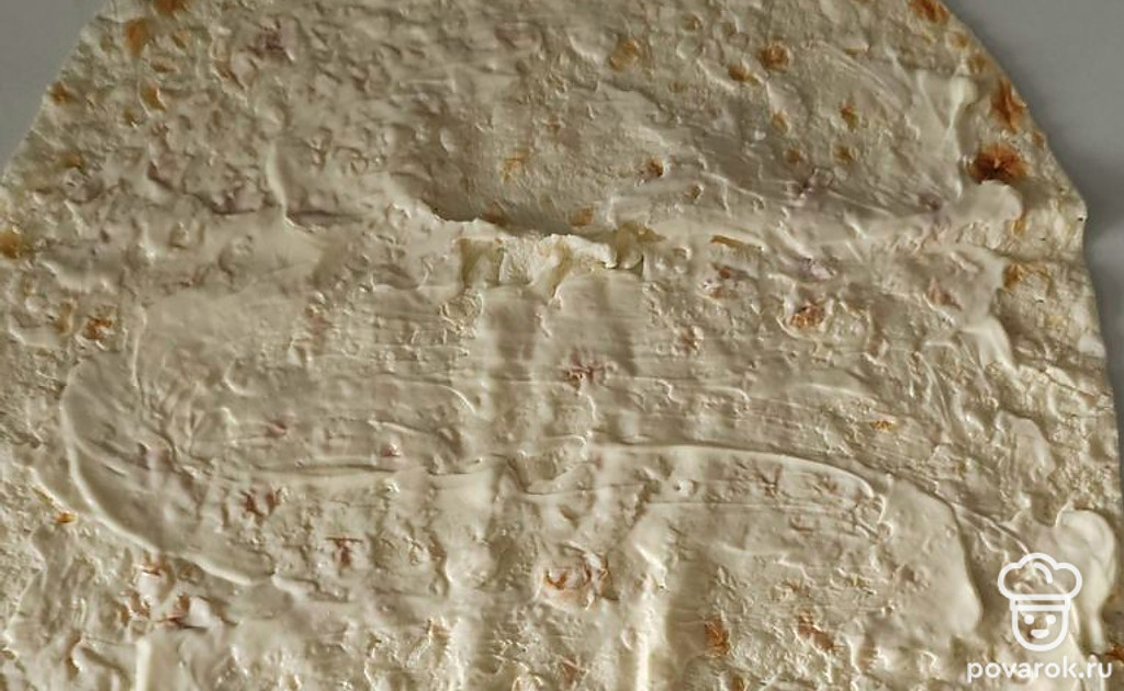 На лаваш намажьте майонез.