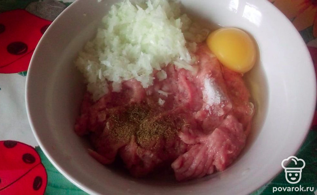Добавьте яйцо, посолите, поперчите. Перемешайте фарш до однородной консистенции.